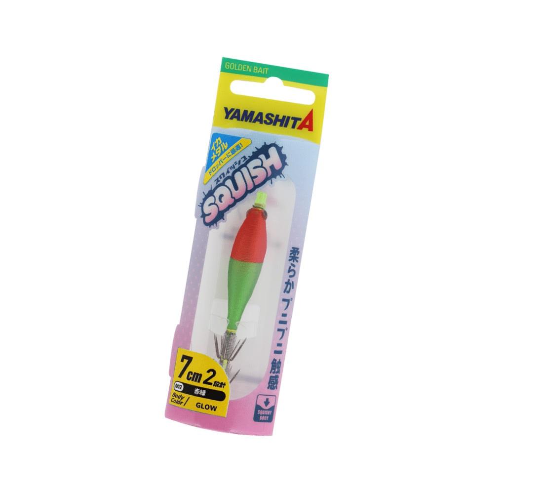 Η καλαμαριέρα Yamashita Squish 7-2 είναι η νέα και βελτιωμένη έκδοση των πολύ πετυχημένων τεχνητών Oppai 7-2 για το ψάρεμα του καλαμαριού. Αποτελούνται από διαφορετικά χρώματα σε έντονους συνδυασμούς.